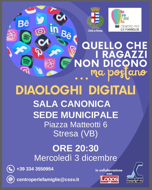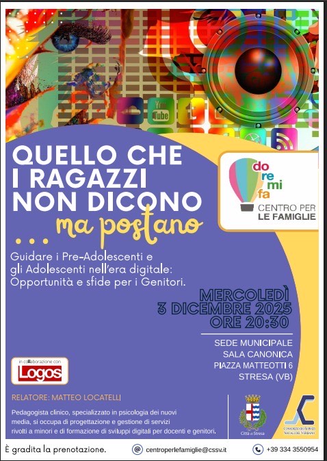 Il Comune di Stresa, in collaborazione con il Centro per le Famiglie “DoReMiFa”, organizza un incontro dedicato ai genitori di preadolescenti e adolescenti per approfondire il tema dell’educazione nell’era digitale.
