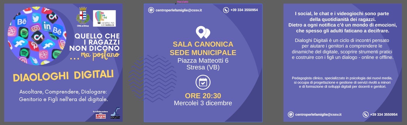 Il Comune di Stresa, in collaborazione con il Centro per le Famiglie “DoReMiFa”, organizza un incontro dedicato ai genitori di preadolescenti e adolescenti per approfondire il tema dell’educazione nell’era digitale.